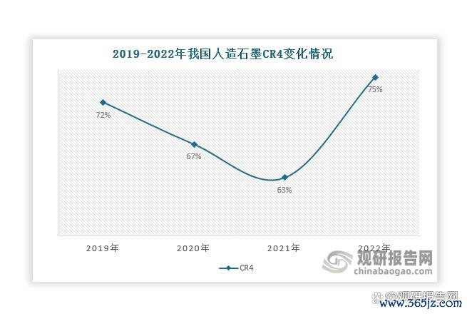 当前,我国人造石墨行业集中度较高。数据显示,2019年-2021年,人造石墨新进入者持续增加,使得其CR4呈现下滑态势,2021年降至63%。但伴随着头部企业新建产能陆续释放和下游客户对人造石墨要求提高,2022年其CR4上升至75%。从竞争格局来看,近年来我国人造石墨市场逐渐形成“三大多小”的多寡头垄断竞争格局,尚未走出绝对龙头。“三大”分别是璞泰来、凯金和杉杉,三家企业无绝对差距,2022年市场份额分别占比23%、21%和20%。“多小”指贝特瑞、翔丰华、尚太等公司,2022年市场份额均在12%以下。