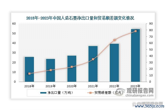 3.人造石墨出口量和净出口量持续增长,贸易顺差额呈现扩大态势