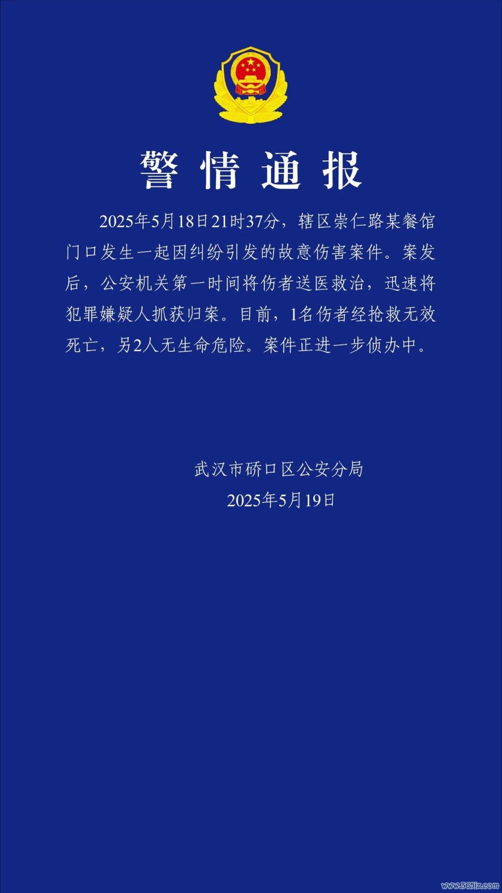 短线配资炒股 武汉昨夜发生故意伤害案,警方通报:1人死亡,嫌犯被抓